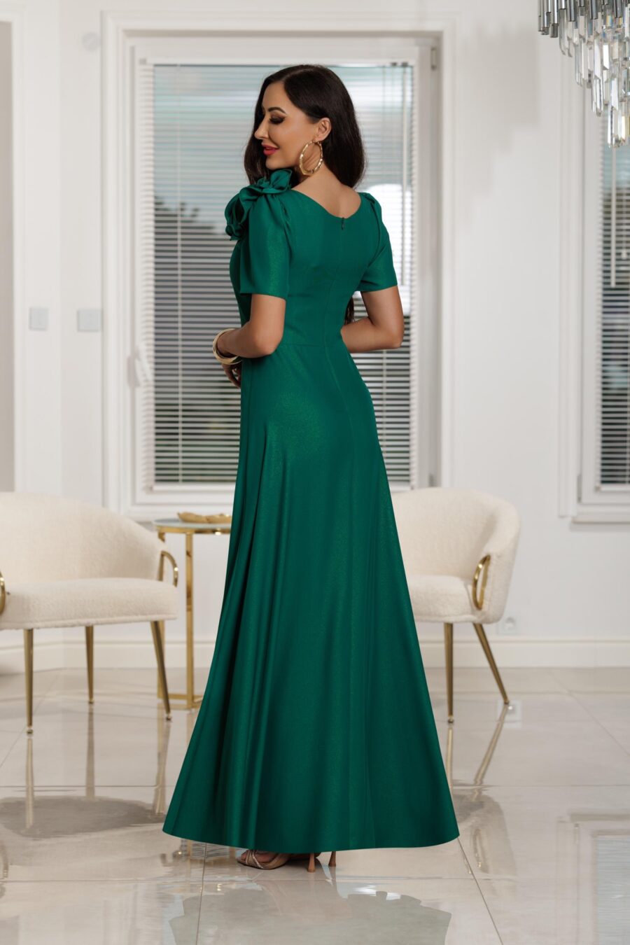 Elegancka sukienka na wesele RUBI maxi / Zielony Glossy