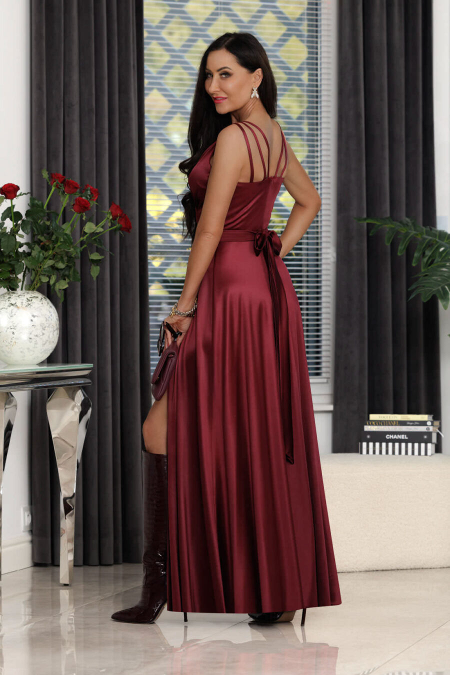 Sukienka maxi MARINA satyna / Bordowy