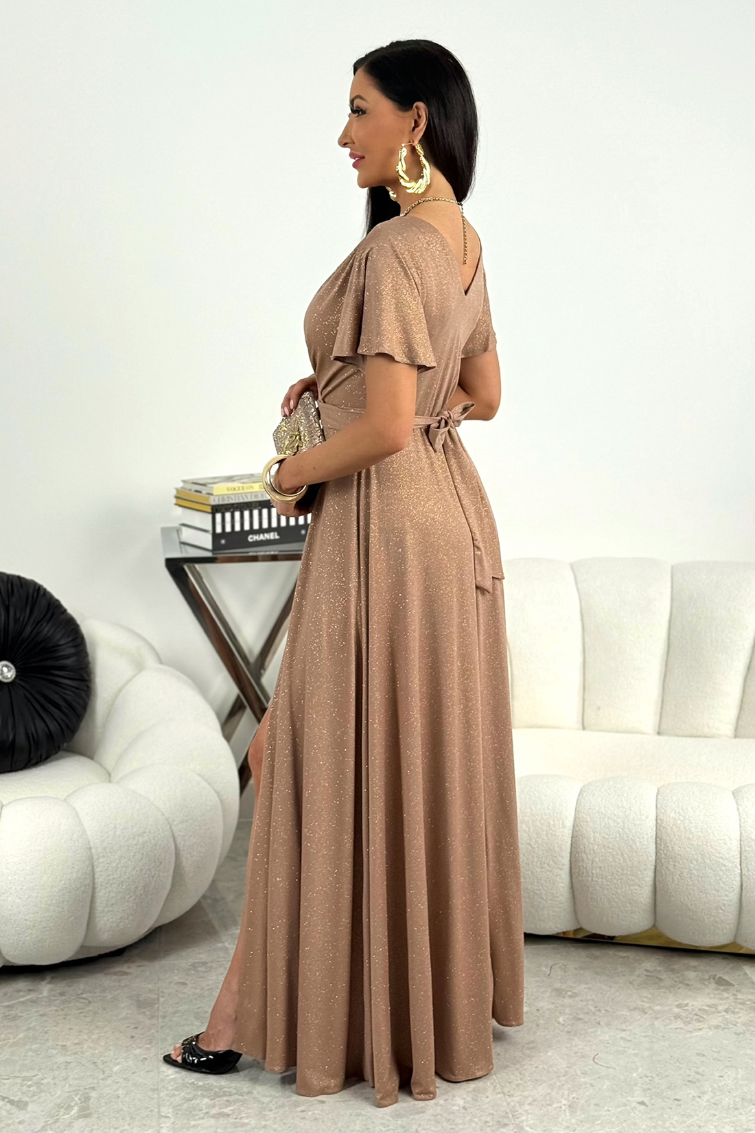 • Długa sukienka wieczorowa Bella brokat / Cappuccino