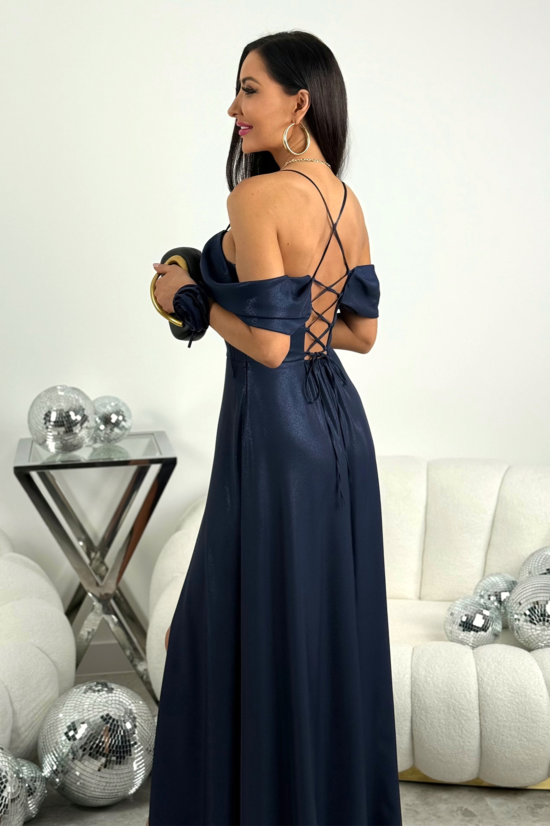Sukienka maxi z hiszpańskim dekoltem SILLA / Granat Błysk
