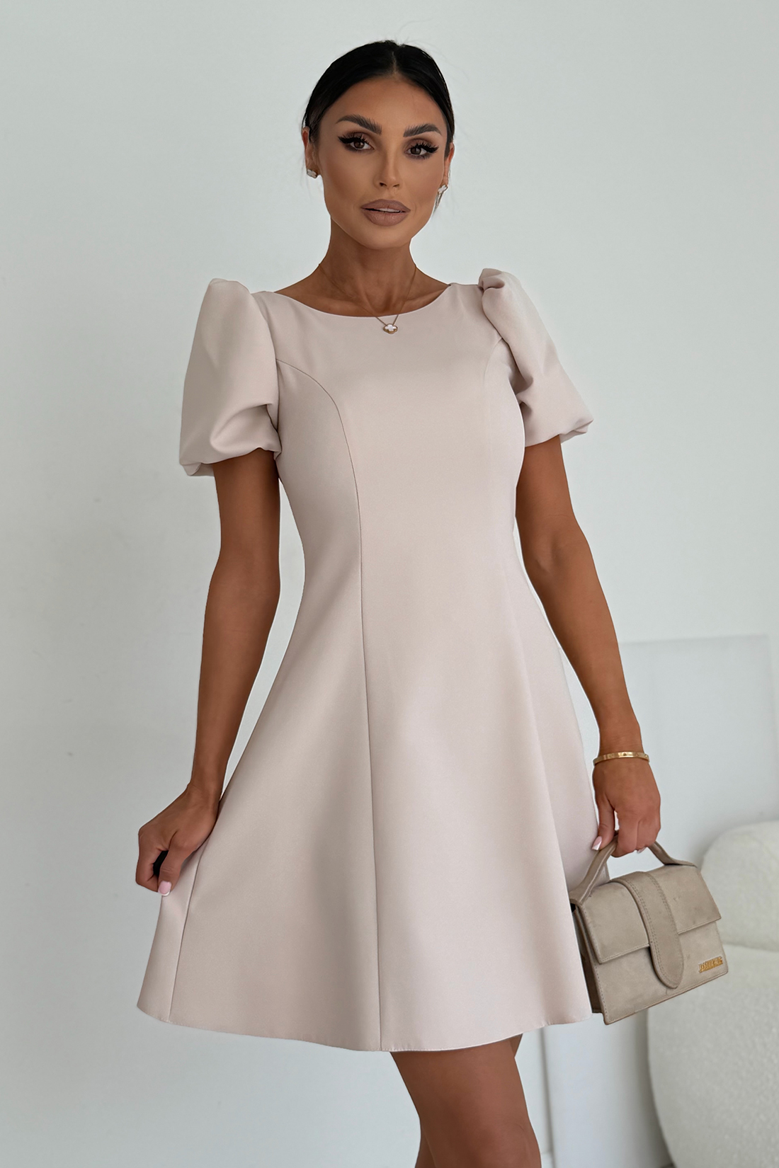 Sukienka CHANEL to propozycja dla butików i hurtowni, które stawiają na stylowe, ponadczasowe modele inspirowane światowymi trendami. Krótka długość, balonowe rękawy i francuskie cięcia sprawiają, że model ten przyciąga uwagę swoim wyjątkowym krojem. Lekko rozkloszowana forma sprawia, że sukienka nie opina sylwetki, a jednocześnie pięknie ją podkreśla – pasuje na wiele typów figur.