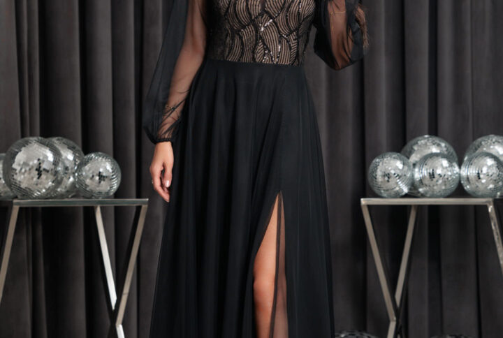 Materiał układa się miękko, dlatego zapewnia komfort podczas całego wydarzenia. Długi rękaw dodaje szyku i sprawia, że model świetnie nadaje się na chłodniejsze pory roku, zwłaszcza na okres świąteczny. Konstrukcja została zaprojektowana tak, aby sukienka dobrze prezentowała się w ruchu. Kryty suwak z tyłu ułatwia zakładanie i pozwala utrzymać elegancką linię pleców.
